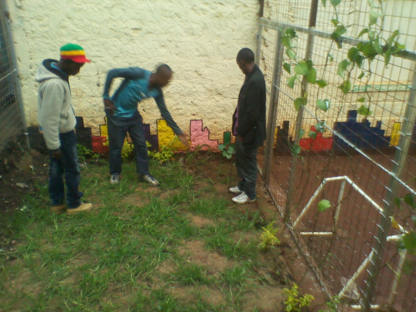 This is the successful green area we have started behind the football pitch. Guess how much grass exists in Mathare Ghetto? Not a whole lot I can assure you.
